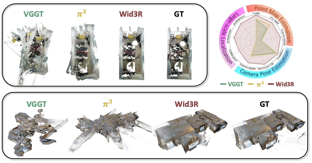 We present Wid3R, a feed-forward neural network for visual geometry reconstruction that supports wide field-of-view camera models.
